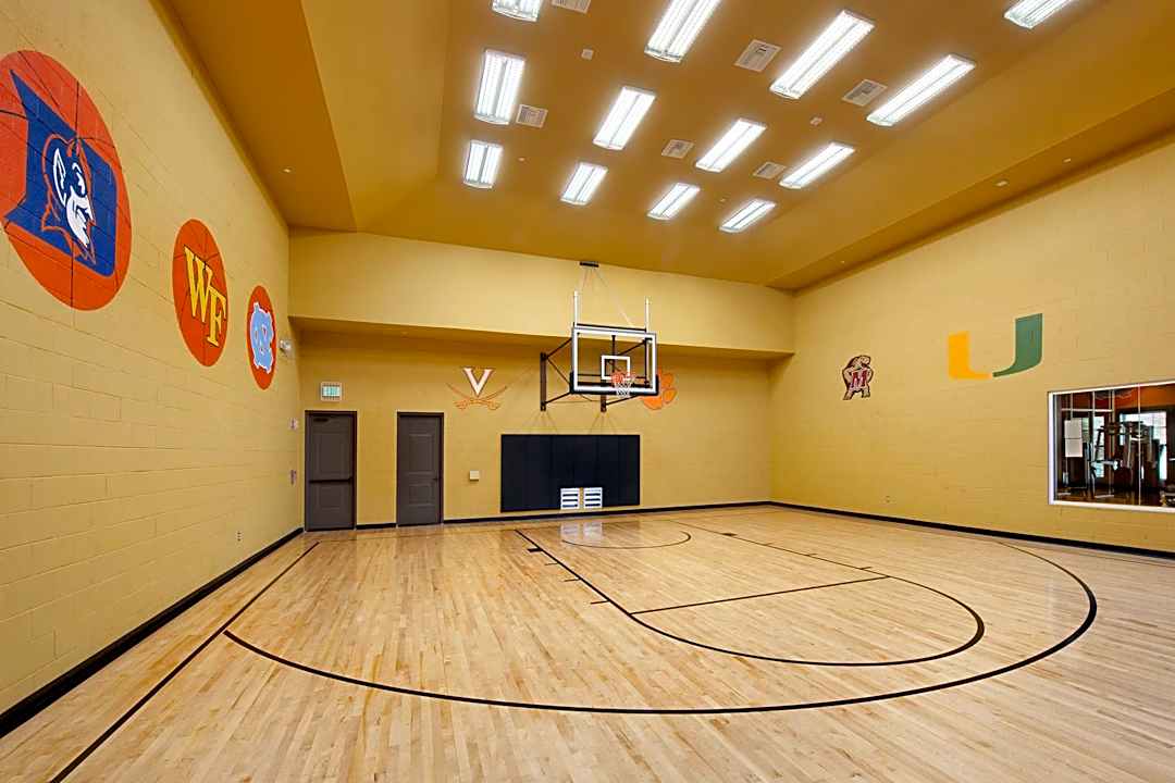 Featuring hardwood flooring professional NBA grade rim and full three point line. Courts may be reserved for 5 per hour. Our calendar enables you to find times that work for you.